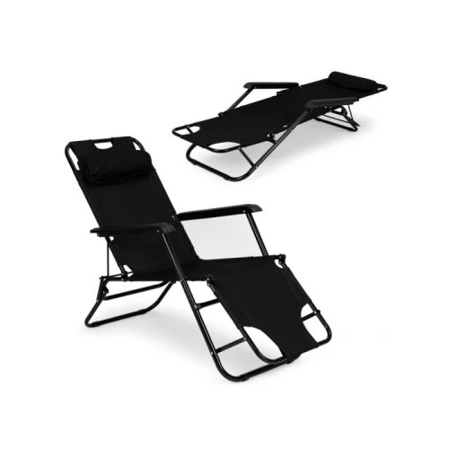 MultiGarden Baštenska ležaljka sa naslonom za glavu, sklopive konstrukcije, crna