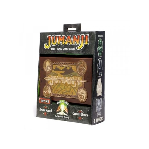| Karakteristike | Minijaturna replika ploče iz kultne filmske serije Jumanji. Kada se otvori, centralni logo svetli i igra se tema bubnja. Dolazi sa minijaturnim kockicama i životinjskim totemima. Imajte na umu da je ovo mini replika - ne sadrži igru. |