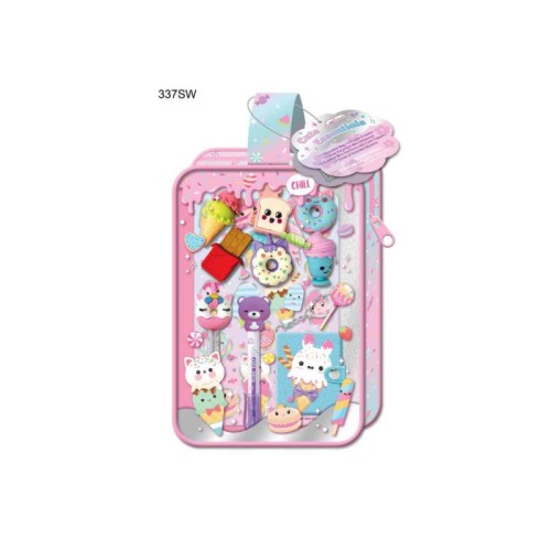 Sadržaj: 6 gumica za brisanje, notes sa priveskom, 2 mirišljave gel olovke, mirišljavi stikeri.