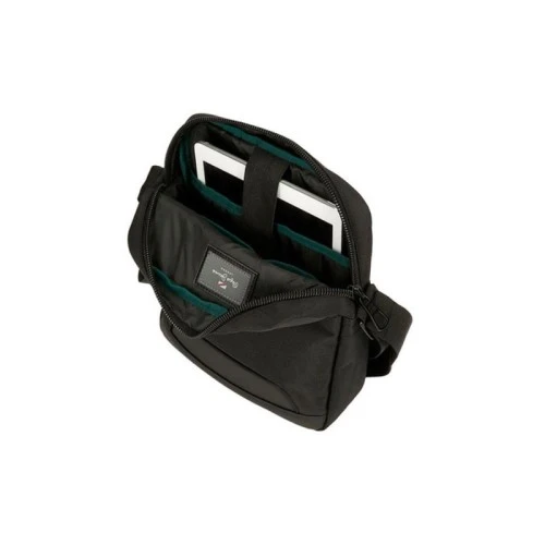 | Karakteristike | Brend: Pepe Jeans Boja: crna jedan glavni odeljak, sa pregradom za tablet unutrašnji džepovi, jedan sa rajsferšlusom zadnji džep sa rajsferšlusom prednji džep sa rajsferšlusom podesivi kaiš Više načina za nošenje: na ramenu, u ruci ili oko struka, jednostavim pričvršćivanjem kaiša |
