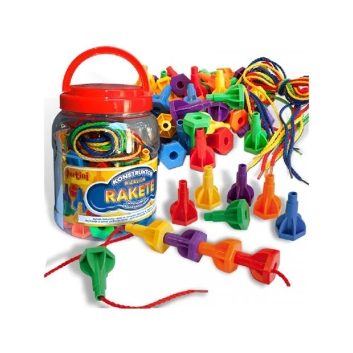 set sadrži 60 plastičnih elemenata u obliku rakete i 4 pertlice različitih boja.