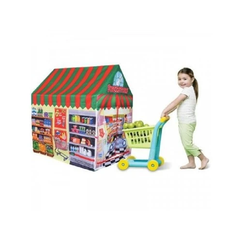 | Karakteristike | Kućica šator sa aplikacijom supermarketa. Šator je izrađen od impregniranog platna sa plastičnom konstrukcijom. Dim.pakovanja: 95x72x102cm. |