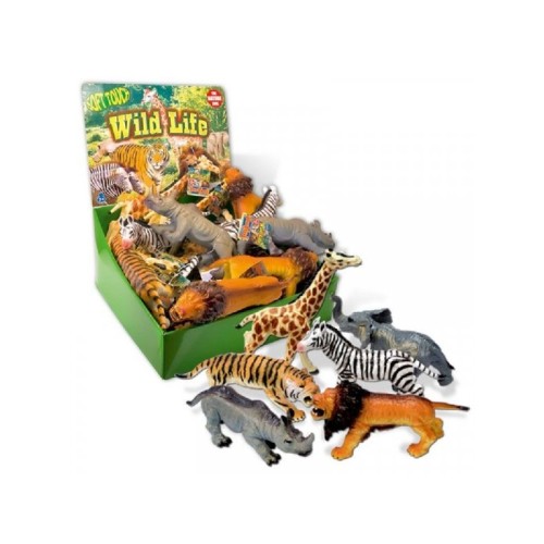 Displej sadrži 6 vrsta životinja ( lav, tigar, žirafa, slon, nosorog i zebra ) - 18 kom, mekane,