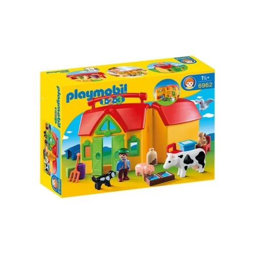 | Karakteristike | Pripremite se za rad na farmi. Sa svetlom i šarenim dizajnom ovaj Playmobil set je idealan za igru najmlađih. Hrani životinje, uklapaj ih u odgovarajuće otvore, nauči oblike. Kada se igra završi sačuvaj sve delove unutar koferčića koji ima ručicu za nošenje kako biste krenuli gde god vas avantura vodi. Set sadrži: jednu figuru, kravu, svinju, psa, pticu i drugu opremu. |