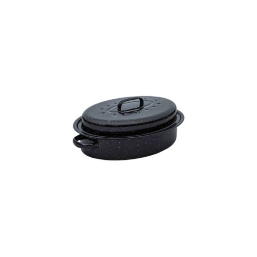 ESTIA ES01-9045 pekač sa poklopcem ovalni je napravljen od visokokvalitetnog ugljeničnog čelika debljine 0,4 mm. Ima emajlirani premaz i metalnu rešetku za zdravo kuvanje i sa manje masti. Nude ravnomernu distribuciju temperature zahvaljujući pari unutar tepsije. Ima ručke za udobno držanje kao i visoku otpornost na ogrebotine, mrlje i udarce. Boje je crne i lako se uklapa.