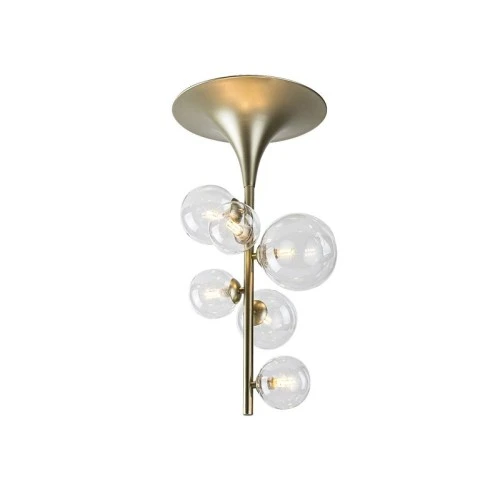 | Specifikacija | Stil lampe: Moderna Preporučena prostorija za korišćenje: Dnevna soba, radna soba IP zaštita: IP20 Boja lampe: Zlatna Materijal lampe: Metal Boja abažura: Transparentna Materijal abažura: Staklo Broj grla: 6 Vrsta grla: G9 Specifikacije osvetljenja: G9 6x max 28W Primenjena voltaža: 230V, 50Hz Rastojanje od plafona: 620 mm Prečnik: 320 mm Prečnik baze: 310 mm Klasa zaštite: II |