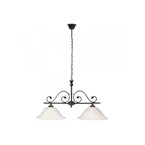 | Karakteristike | Materijal: Metal/Staklo Karakteristike: IP zaštita: IP20 Broj grla: 2 Vrsta grla: E27 Specifikacije osvetljenja: E27 2 x MAX 60 W Primenjena voltaža: 230 V, 50 Hz Boja: Crna Dimenzije: Udaljenost od stropa: 90 cm Širina abažura: 72 cm Masa: 2.8 kg Pakovanje: Dimenzije pakovanja: 59.5 x 17 x 33 cm Bruto masa: 4.62 kg |