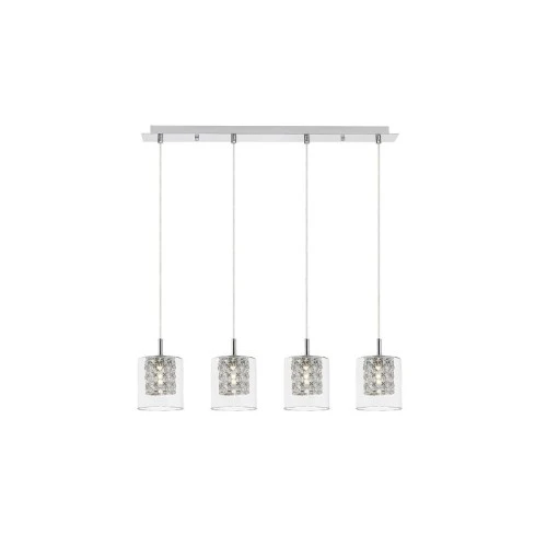 | Karakteristike | Tip: Visilica Stil lampe: Moderna Preporučena prostorija za korišćenje: Dnevna soba, trepezarija, spavaća soba IP zaštita: IP20 Boja lampe: Hrom Materijal lampe: Metal Boja abažura: Transparentna Materijal abažura: Staklo Broj grla: 4 Vrsta grla: G9 Specifikacije osvetljenja: G9 4x max 40W Primenjena voltaža: 230V, 50Hz Udaljenost od stropa: 1200 mm Dimenzije: 720 x 120 mm Klasa zaštite: I |