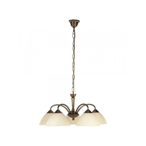 | Karakteristike | Materijal: Metal/Staklo Karakteristike: IP zaštita: IP20 Broj grla: 5 Vrsta grla: E14 Specifikacije osvetljenja: E14 5 x MAX 40 W Primenjena voltaža: 230 V, 50 Hz Klasa zaštite: I Boja: Bronzana Dimenzije: Udaljenost od stropa: 90 cm Prečnik abažura: 52 cm Masa: 3.6 kg Pakovanje: Dimenzije pakovanja: 45 x 43 x 25.8 cm Bruto masa: 5.37 kg |