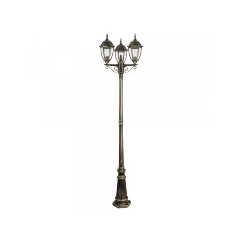 | Karakteristike | Materijal: Metal/Staklo/Metal Karakteristike: IP zaštita: IP44 Broj grla: 3 Vrsta grla: E27 Specifikacije osvetljenja: E27 3 x MAX 60 W Primenjena voltaža: 230V, 50Hz Klasa zaštite: I Boja: Zlatna Dimenzije: Visina: 230 cm Prečnik: 60 cm Masa: 9.5 kg Pakovanje: Dimenzije pakovanja: 74 x 50.4 x 41 cm Bruto težina: 11.7 kg |
