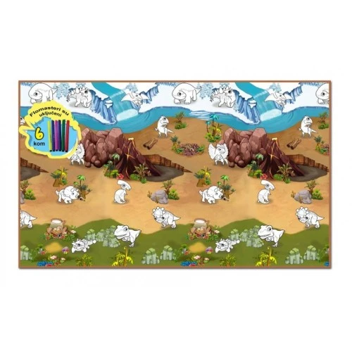 ROLLMATZ Podloga za igranje Dinosaurus + 6 flomastera 200 x 120cm
