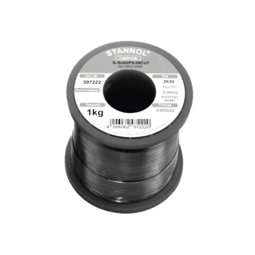 | Karakteristike | Sastav: Sn/Pb/Cu: 60%/39%/1% Kalofonijum: 2.2% Pakovanje: 1000 g Dimenzije: 1.0 mm |