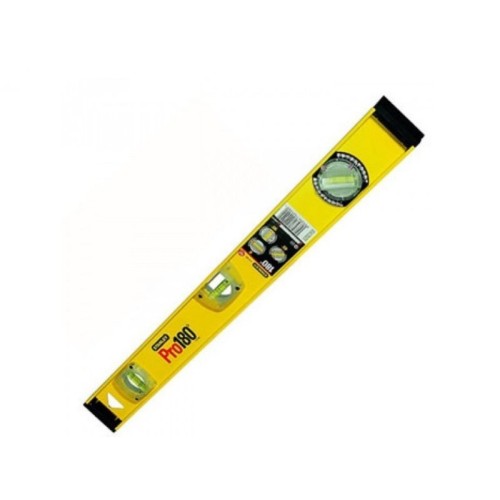 | Ostalo | Stanley libela PRO 180 sa uglomerom 80 cm. Napravljena je od aluminijuma, zbog dugotrajnosti. Ivice su otporne na udarce, a ako slučajno dođe do pada, to neće uticati na preciznost. Tri vidljive cevaste bočice: gornja za očitavanje, visak, rotaciona na 180 stepeni ( dvojna gradacija od 0-90 stepeni i u koracima od po 10 stepeni). Dužina: 80 cm Tačnost: +/- 1,5 mm/m Dimenzije: 2.5 x 40.5 x 5.9 cm |