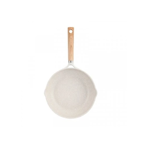 | Karakteristike | • Četvoroslojni mermerni premaz • Debljina tela 4mm • Veličina 24cm • Bez PFOA • Indukciono dno • Soft touch drška sa motivom drveta • Može se koristiti na svim vrstama šporeta |