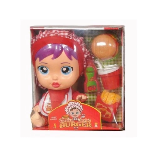 | Karakteristike | Set uključuje sve što je potrebno za igru: 1 bebu u kuvarskom odelu 1 salatu 1 paradajz 1 meso za hamburger 1 sir za hamburger 2 zemičke za hamburger 3 krompirića 1 posudu za krompiriće 1 flašu kečapa 1 čašu kole 1 poklopac za kolu Dimenzije pakovanja: 22.5 x 6 x 25 cm |