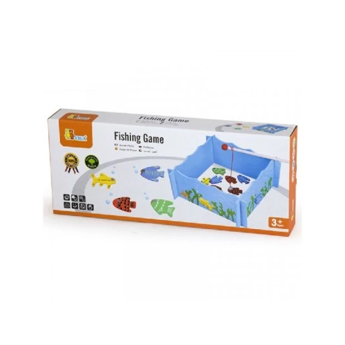 | Karakteristike | Igra pecanje ribica sadrži drveni bazen, 4 štapa za pecanje sa magnetima i 20 figura ribica sa brojevima sa zadnje strane. Dim: 25x19x4 cm. |