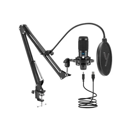 | Karakteristike | Set uključuje pop filter, antivibracioni držač, vetrobran, podesivi studijski stalak i USB-B na USB-A kabl. Stalak koji je deo seta je okretan i nagibajući u dve ose za maksimalno prilagođavanje vašim individualnim potrebama smeštaja. Vertikalni doseg stalka je do 750 mm. Mikrofon jezgro Kondenzatorsko (⌀ 16 mm) Polaritet Svepravna Frekvencijski odziv: 50-20 kHz Osetljivost -40 dB +/- 6 dB, 0 dB = 1V/Pa Maksimalni SPL: 120 dB Odnos signala i buke: 66 dB Napajanje 1,5 V/3 mA Kabl: 2,5 m Priključak USB Materijal: Cink metalna legura Visina stalka: do 75 cm Potrebna debljina stola: ≤4 cm |