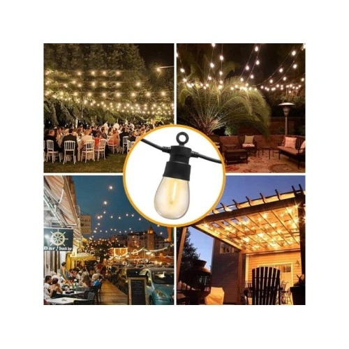 | Karakteristike | Montaža Viseća Akumulator Ugrađen punjivi akumulator Punjenje Solarno Boja svetlosti Toplo bela Materijal kućišta Plastika IP zaštita IP44 Vreme rada ~8 h Dimenzije 4.5 m (dužina niza), 2 m (dužina kabela od prve lampe do solarnog panela), 50 cm (razmak između sijalica) Dekorativni viseći LED niz sa 10 LED sijalica, sa solarnim napajanjem Nije potrebno mrežno napajanje, te je idealan za dekoraciju bašte, dvorišta, terase... Preko dana se napaja putem solarnog panela, a svetli noću Ima 8 režima rada koji se menjaju pritiskom tastera na zadnjoj strani solarnog panela Emituje prijatnu toplo belu svetlost |