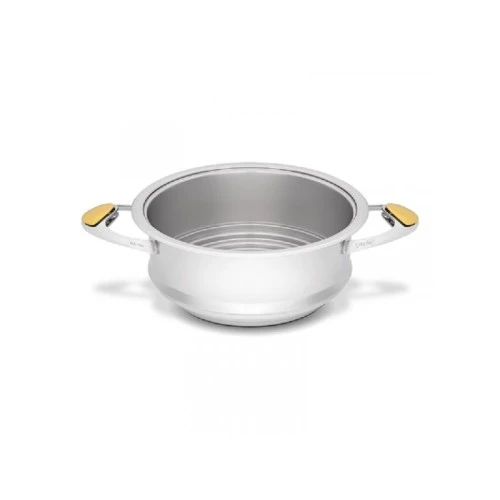 | Karakteristike | Šifra proizvoda: Z-S24 Primena: Tradicionalno kuvanje (sa vodom), kuvanje bez vode, pečenje bez masnoća, kuvanje na pari Bruto težina (kg): 1.44 Neto težina (kg): 1.16 Kapacitet posude: 4,8 L Prečnik posude: 24 cm Visina posude: 11 cm Vrsta čelika: AISI304 Poklopac: Ne. Ova posuda nije pogodna za kombinaciju sa Syncro Click poklopcem. Pokazatelj temperature: Ne Pogodno za pranje u mašini za sudove: Da Pogodno za korišćenje u rerni: Da Zemlja porekla: Italija |